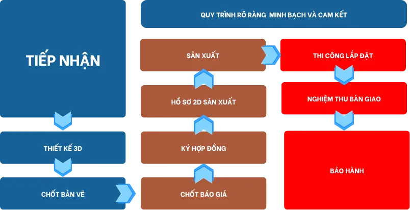 Chúng tôi sẽ thi công phần thô (nếu có), sau đó vận chuyển và lắp đặt nội thất theo bản vẽ thiết kế. Quá trình thi công được giám sát chặt chẽ để đảm bảo đúng tiến độ và chất lượng.